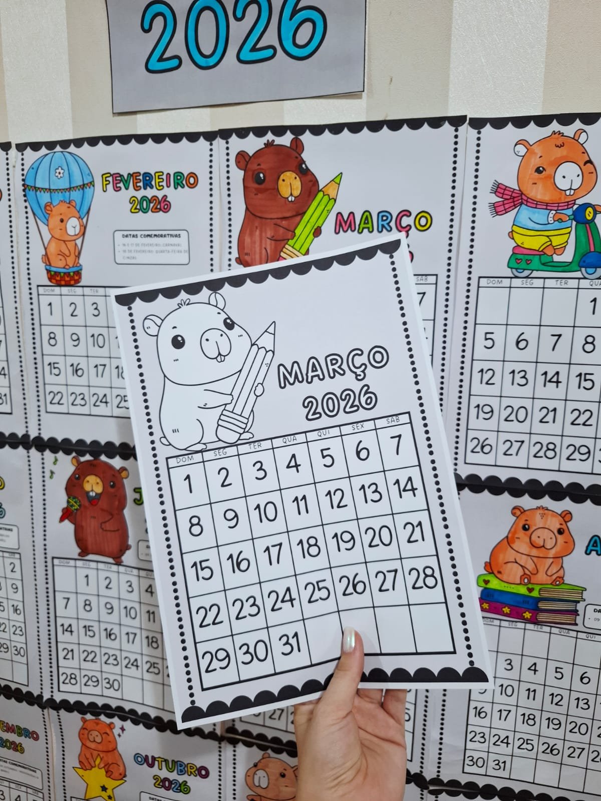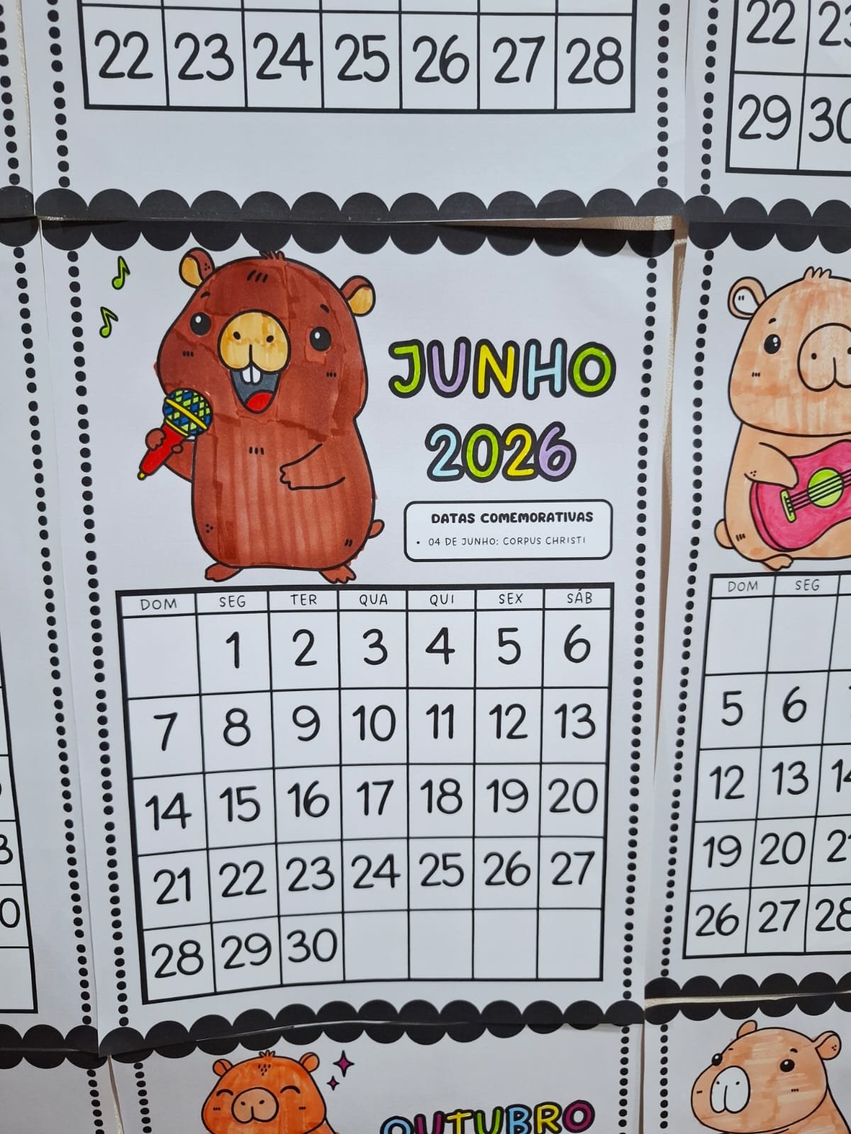 O Calendário mensal de Parede para Colorir foi criado para trabalhar, de forma lúdica e significativa, a noção de tempo com as crianças dos Anos Iniciais. Material com lindos desenhos para colorir no tema CAPIVARA.