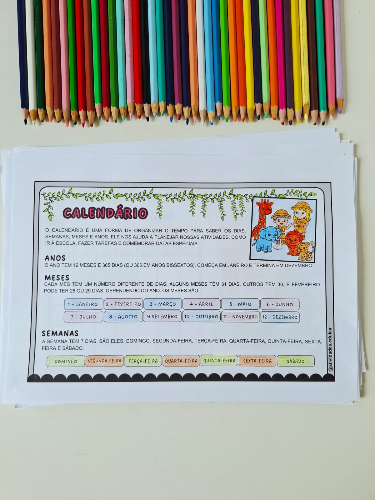 Para tornar o aprendizado mais atrativo, o material conta com ilustrações fofas no tema safari e desenhos para colorir, o que aumenta o interesse, o envolvimento e a participação das crianças nas atividades.
