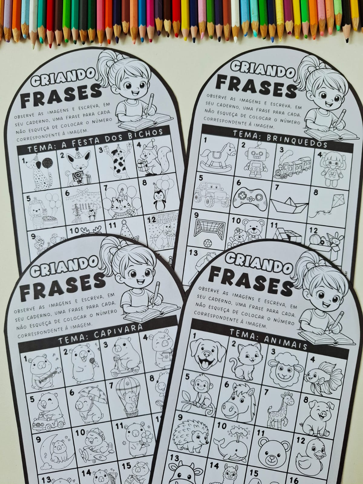 O Criando Frases é um material desenvolvido para estimular a prática da construção de frases em crianças em processo de alfabetização. O arquivo contém 13 atividades temáticas, que apresentam diferentes cenários para inspirar a escrita e incentivar a organização das ideias. Entre os temas trabalhados estão:
