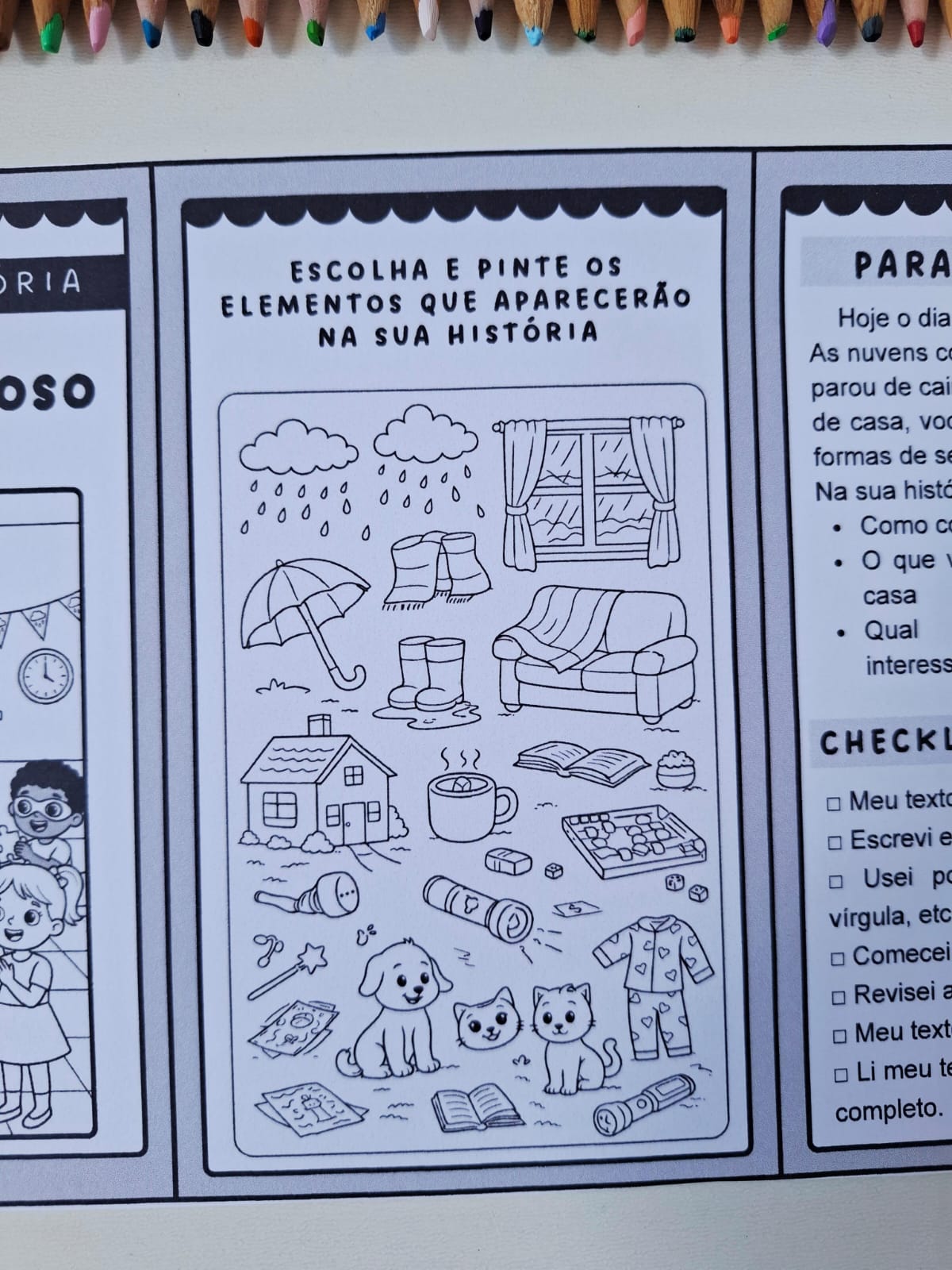 2️⃣ Coletânea de imagens para o aluno escolher e pintar os elementos que deseja utilizar na narrativa