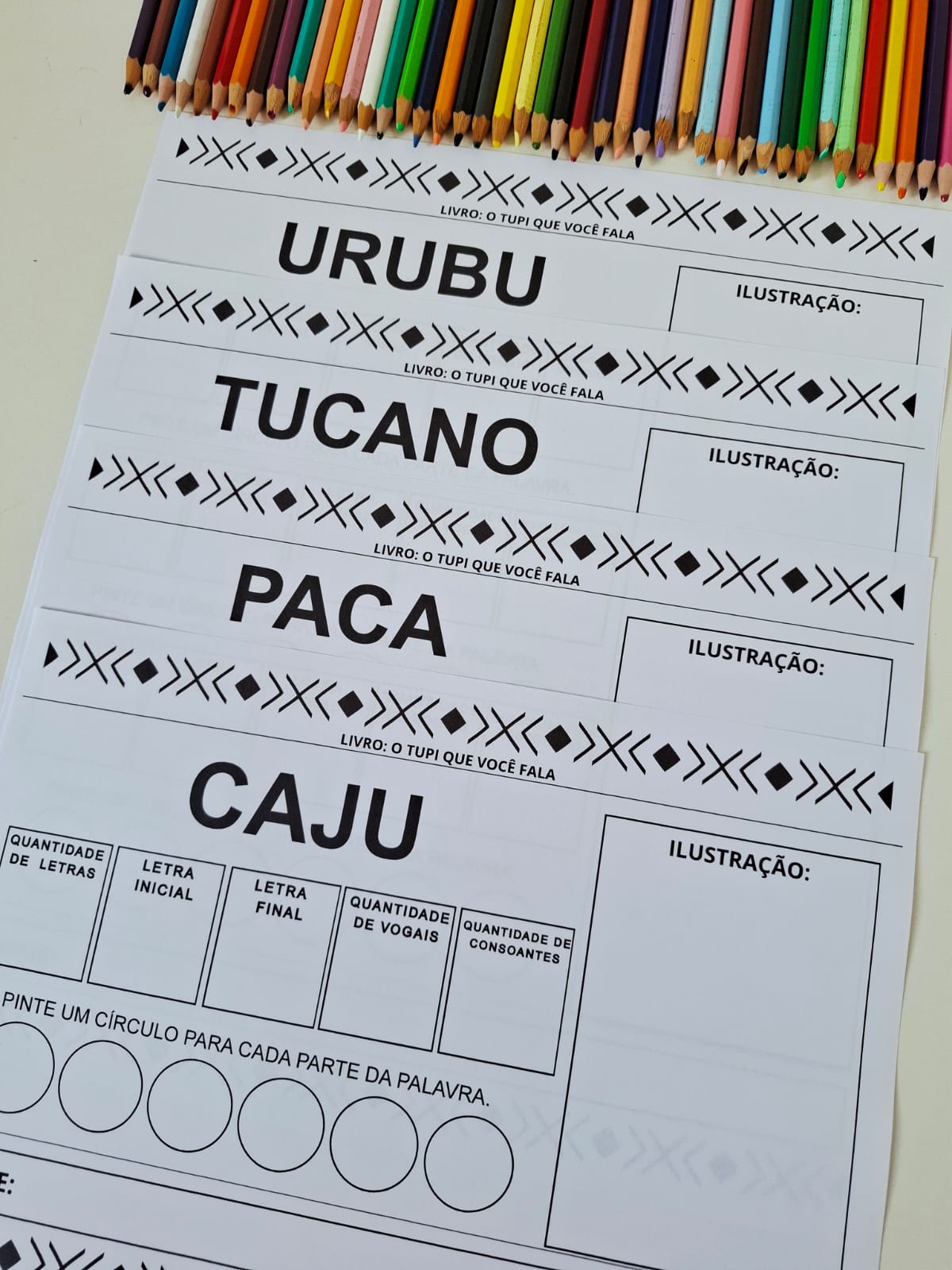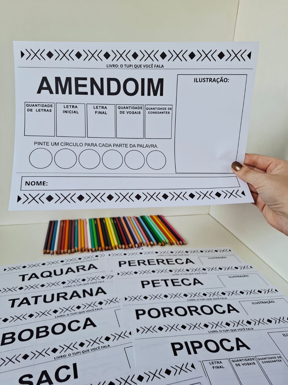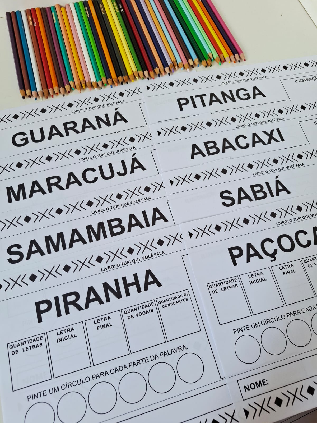 O material foi elaborado com base na obra literária “O Tupi que você fala”. ideal para construir um mural ou varalzinho de exposições.