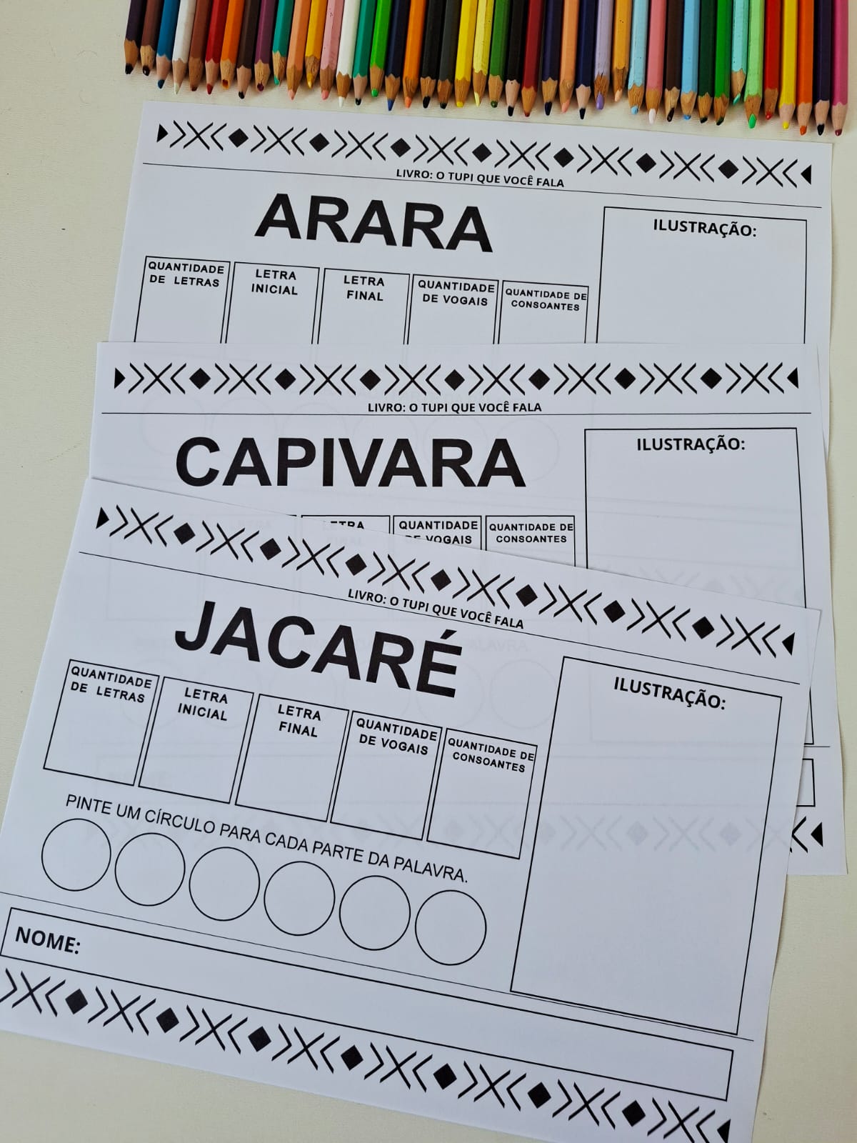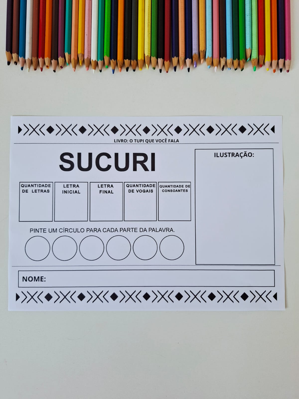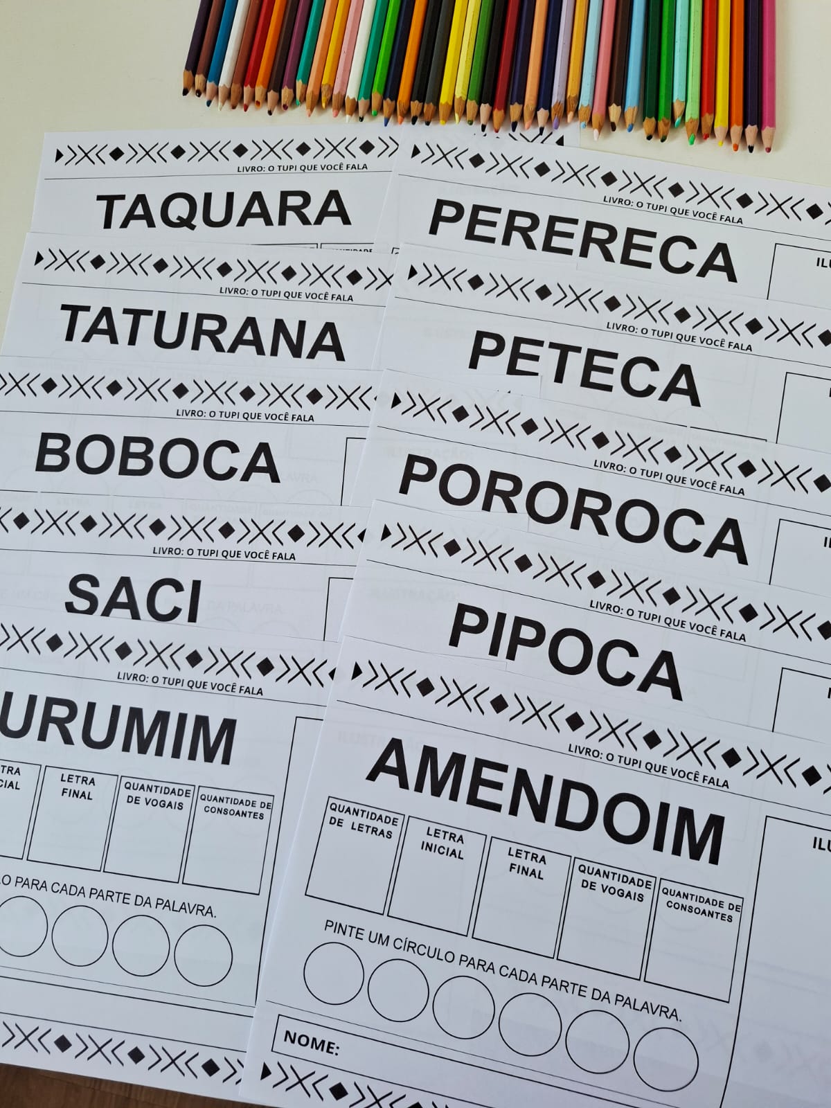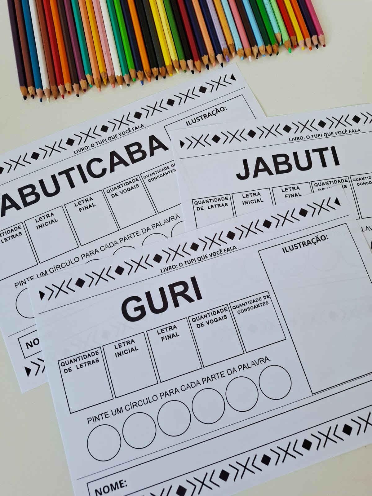 O material foi elaborado com base na obra literária “O Tupi que você fala”. ideal para construir um mural ou varalzinho de exposições.